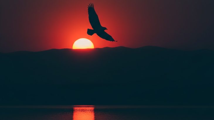 夕日に飛ぶ鳥 太陽は、 低く赤く空を焼く 強い夕日と鳥の影 影はただ、 悲しみを焼き尽くすために 太陽を目指す 次第に 日は山に飲み込まれ 鳥の影はスゥと消えた 悲しみは 闇に溶けて 静かに救われた