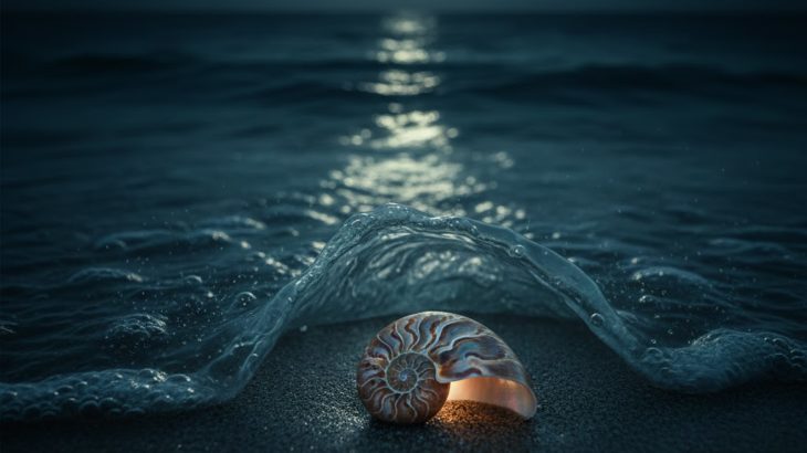 『波の手のひら』 貝殻は、ひとりで浜辺にいた。 乾いた風にさらされ、 太陽に焼かれながら、 それでも、誰にも拾われることなく、 ただ、海を待っていた。 夜が来て、潮が満ちる。 波がそっと近づいてくる。 最初のひと撫では、 まるで「見つけたよ」と言うように、 貝殻の縁を優しくなぞった。 次の波は、少し深く。 貝殻の内側に残る虹色に触れ、 その色が、 […]